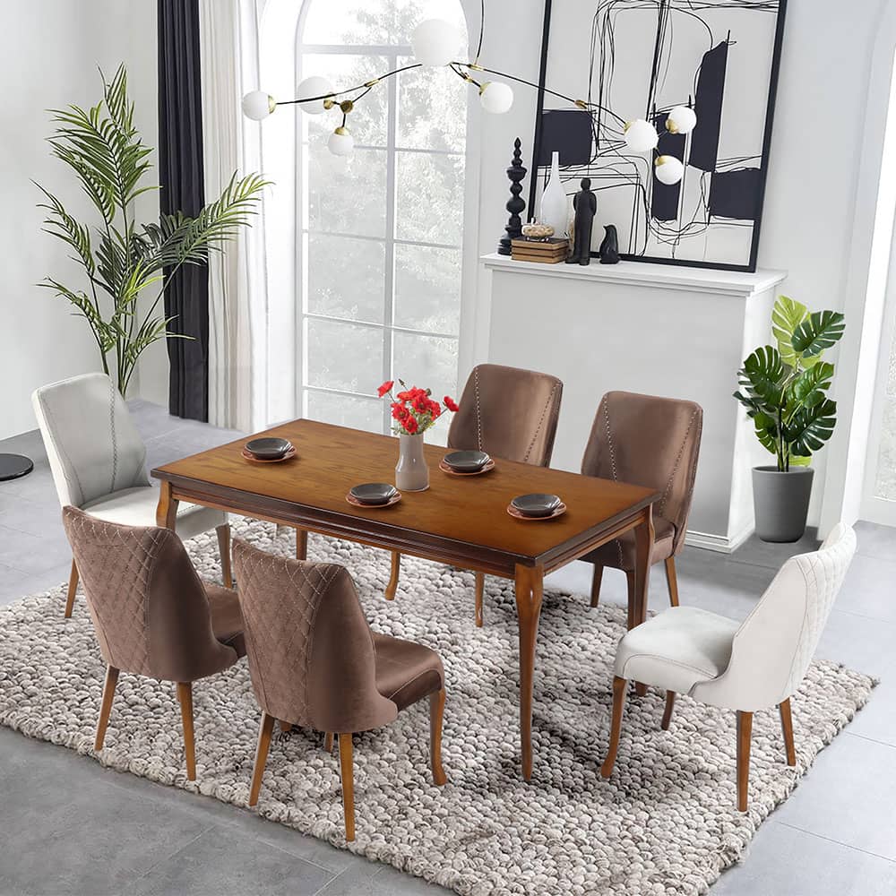 • تنوع چیدمان: میز مستطیلی به آسانی کنار دیوار یا وسط سالن قرار می‌گیرد و نقطه کانونی زیبایی برای دکوراسیون محسوب می‌شود.